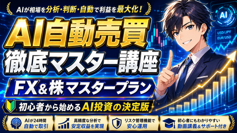 「AI自動売買 徹底マスター講座「FX&株マスタープラン」」は、初心者でも安心してAI投資を始められる講座です。